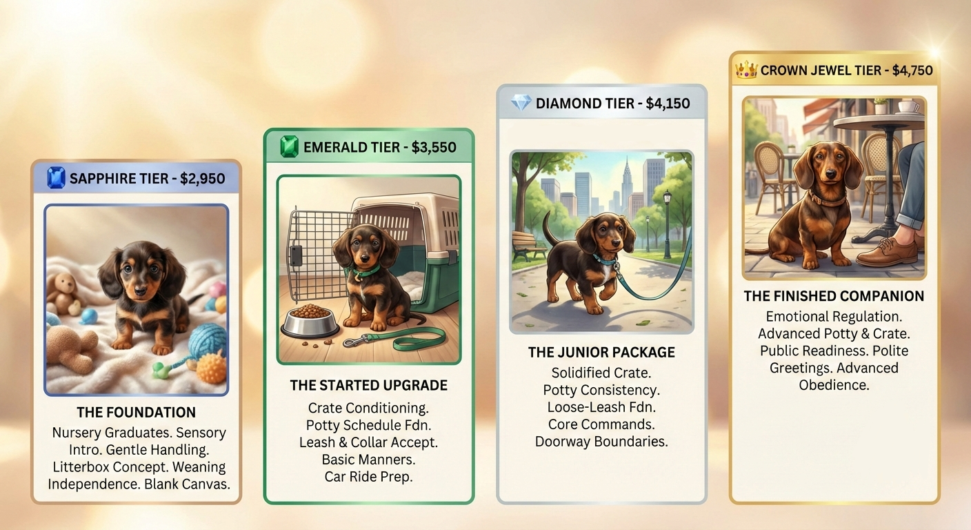 At RockinDachs, a puppy doesn't graduate to the next tier just because of their age. Learn why we prioritize evaluation over birthdays to match you with a structurally and emotionally sound companion.